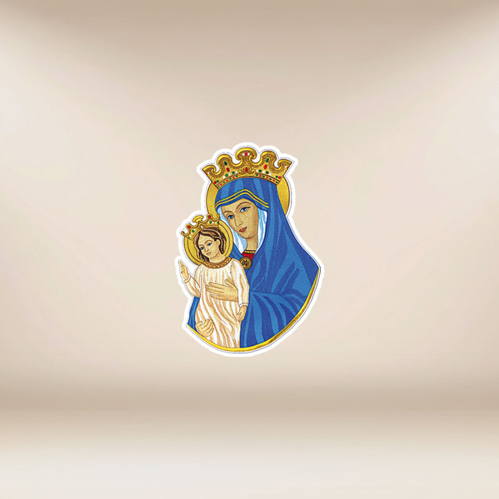 Aplikacja haftowana Matka Kościołów przedstawia Maryję jako Matkę Chrystusa i jednocześnie Matkę całej wspólnoty wierzących. Ten wyjątkowy wizerunek, głęboko zakorzeniony w nauczaniu Kościoła, ukazuje Jej duchowe macierzyństwo oraz nieustanną opiekę nad Kościołem pielgrzymującym. Maryja trzymająca Dzieciątko Jezus wprowadza do liturgii atmosferę czułości, pokoju i zaufania Bożej Opatrzności, czyniąc motyw szczególnie odpowiednim na uroczyste celebracje Maryjne.