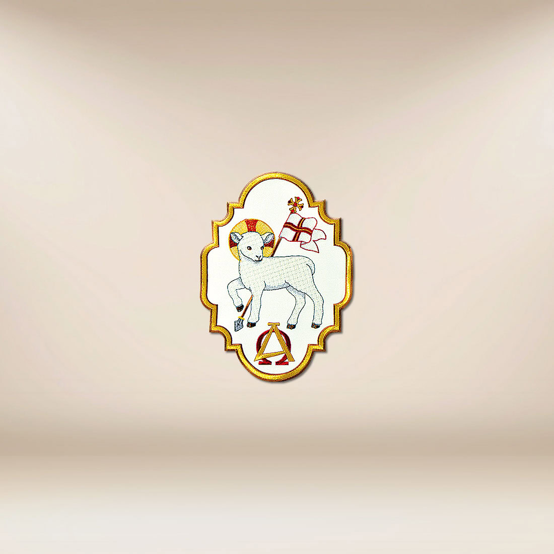 Aplikacja haftowana Baranek Boży stanowi głęboko zakorzeniony w tradycji Kościoła motyw paschalny, niosący bogate znaczenie teologiczne i liturgiczne. Przedstawienie Baranka Bożego z chorągwią zwycięstwa jest czytelnym symbolem Chrystusa, który przez swoją ofiarę przyniósł światu zbawienie i nowe życie. To motyw szczególnie związany z misterium Eucharystii oraz Zmartwychwstania Pańskiego.