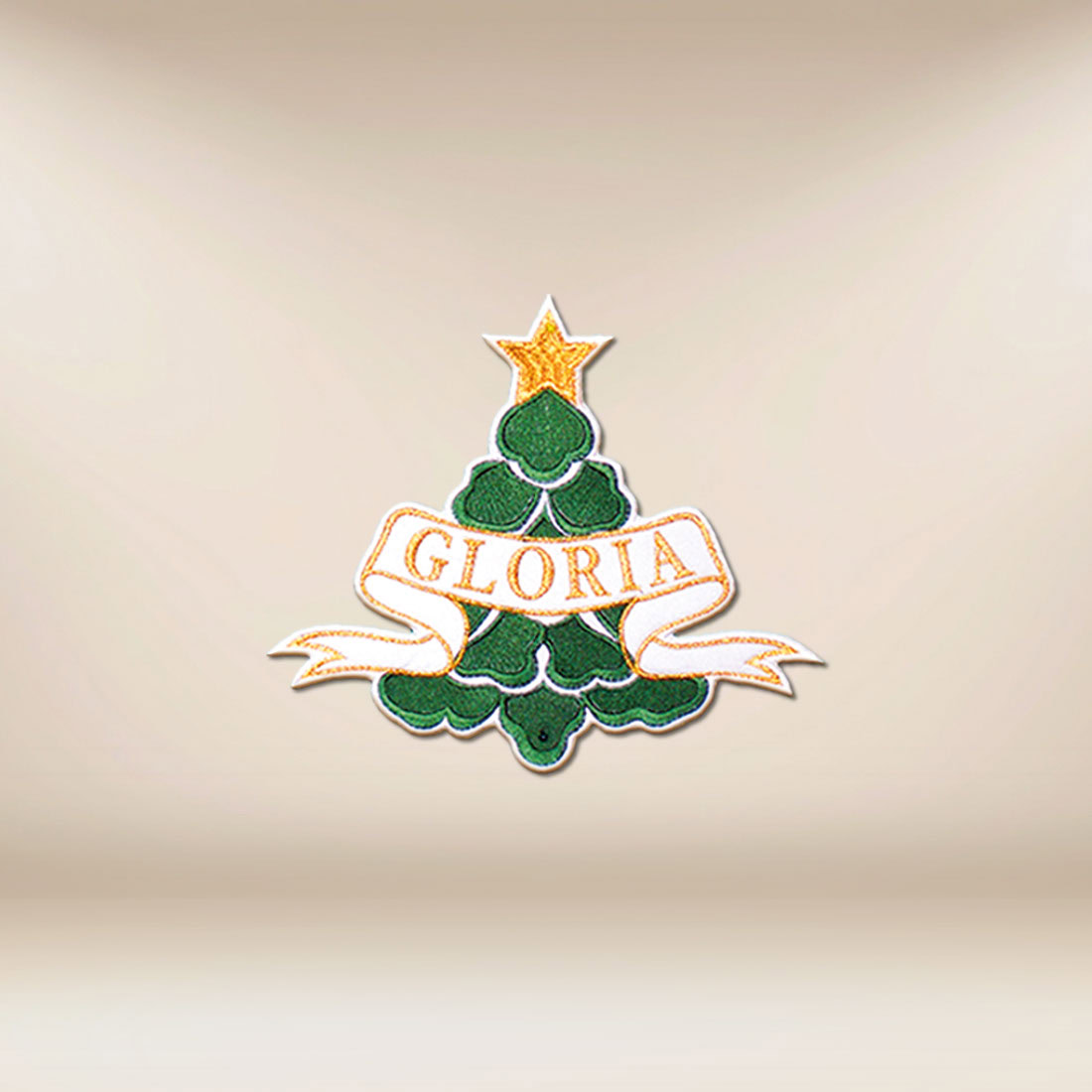 Aplikacja haftowana Gloria została stworzona z myślą o podkreśleniu radosnego i uroczystego charakteru liturgii, szczególnie w czasie Narodzenia Pańskiego. Jej kompozycja opiera się na symbolicznym motywie drzewa, zwieńczonego gwiazdą betlejemską, oraz na wyraźnie wyeksponowanym napisie „Gloria”, który od wieków rozbrzmiewa w liturgii jako hymn chwały oddawanej Bogu.