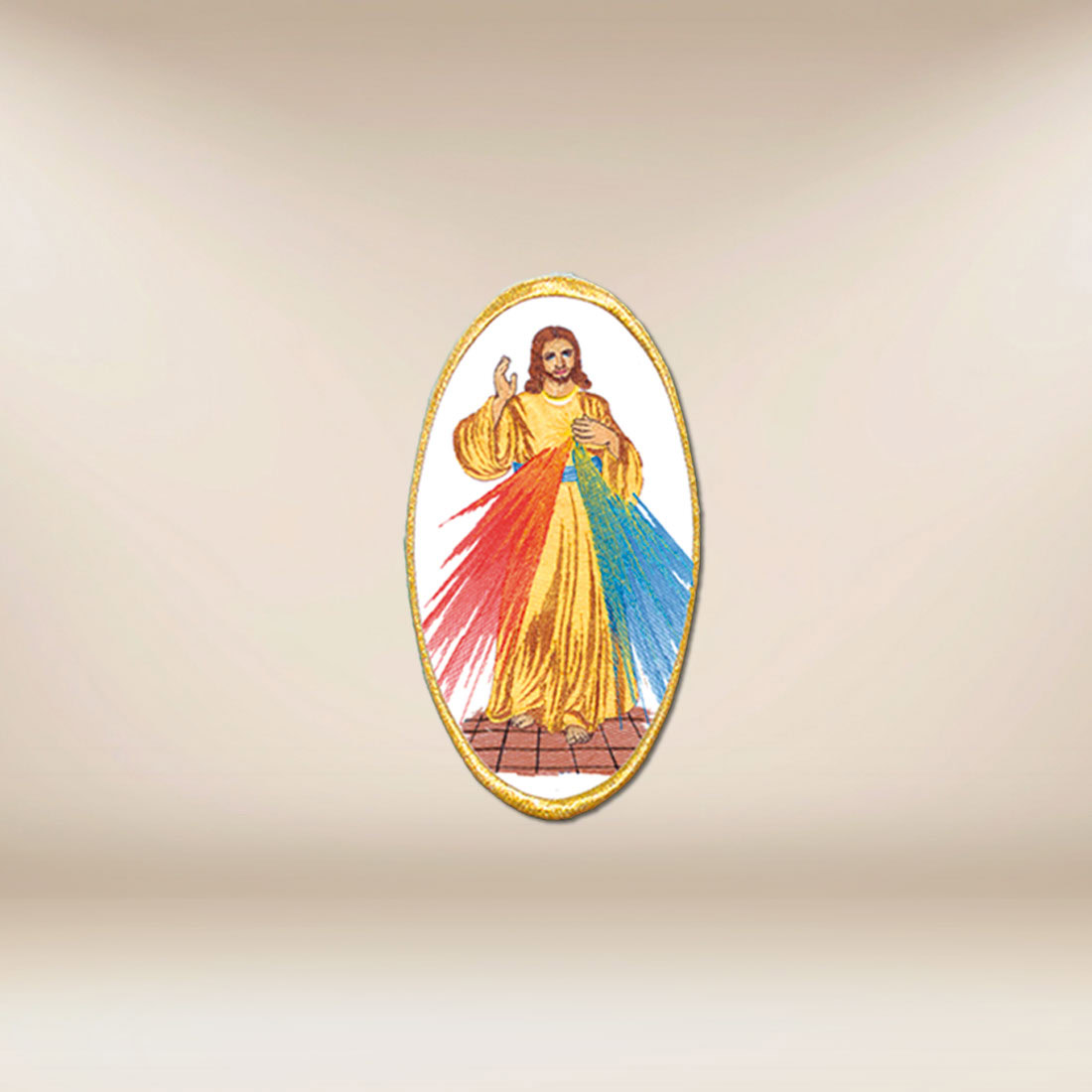 Aplikacja haftowana przedstawiająca Jezusa Miłosiernego to wyjątkowy element dekoracyjny przeznaczony do naszycia na szaty liturgiczne, takie jak ornaty, stuły, kapy czy alby. Wykonana z najwyższą starannością, łączy w sobie głęboką symbolikę religijną z estetyką i trwałością ręcznego lub maszynowego haftu. Jest to doskonały wybór dla parafii, zakonów oraz osób zajmujących się szyciem i renowacją szat liturgicznych.