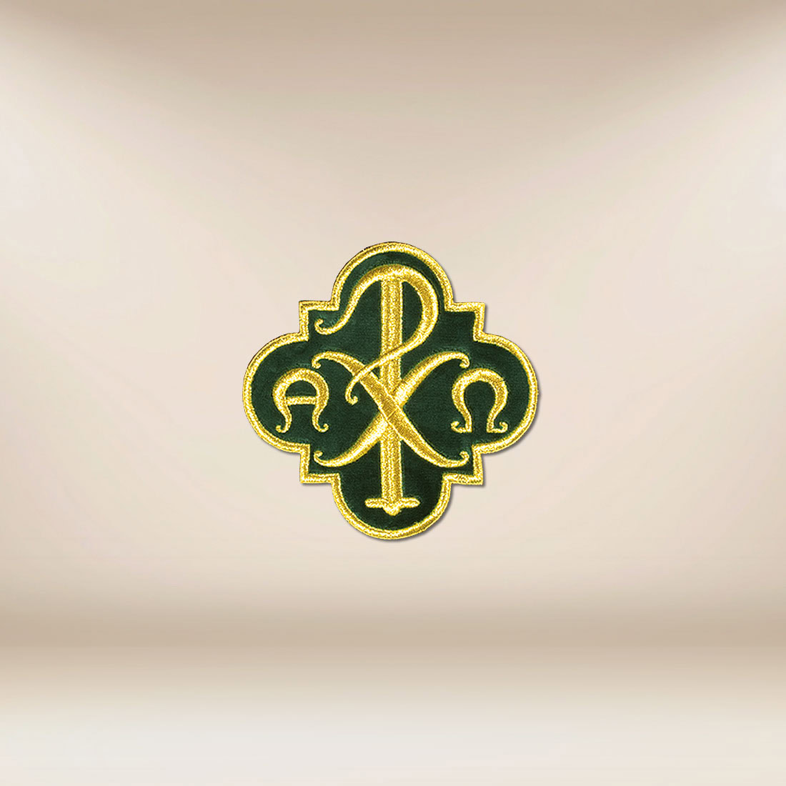 Aplikacja haftowana PX plusz została zaprojektowana jako wyrazisty, a jednocześnie harmonijny akcent na szatach liturgicznych. Motyw PX , otoczony literami Alfa i Omega, nawiązuje do Chrystusa — początku i końca — oraz do zwycięstwa życia nad śmiercią. Aplikacja haftowana PX plusz doskonale sprawdzi się na stułach, ornatach i innych elementach wyposażenia używanych podczas celebracji.