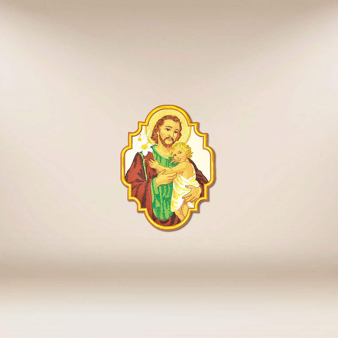 Aplikacja haftowana Święty Józef została zaprojektowana jako motyw pełen łagodności i wewnętrznej siły. Już na pierwszy rzut oka aplikacja haftowana „Św. Józef” ukazuje postać czułego opiekuna, który obejmuje Dzieciątko — znak troski, odpowiedzialności i ojcowskiej miłości.