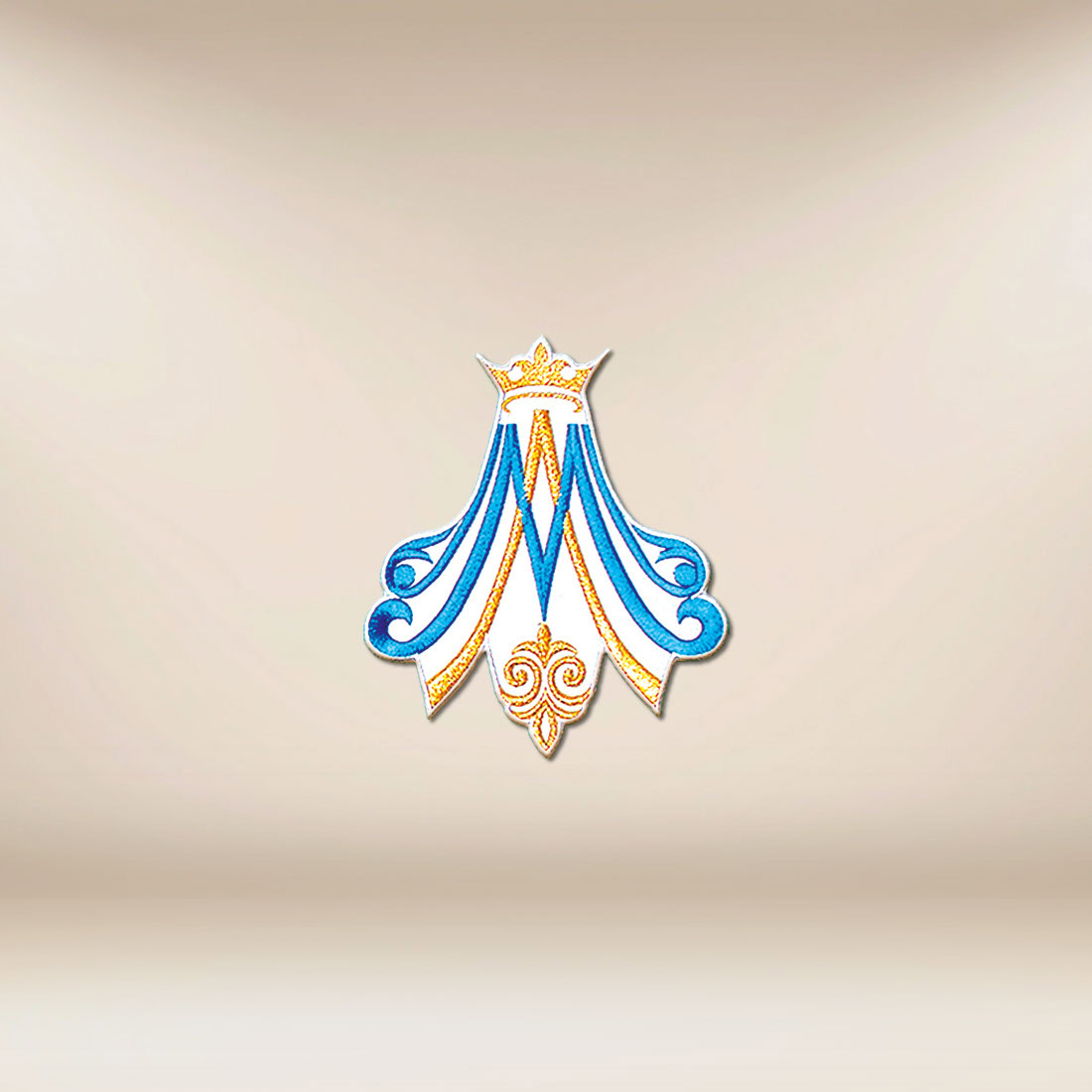 Aplikacja haftowana maryjna M została zaprojektowana z myślą o spokojnej elegancji i wyraźnym, czytelnym przekazie. Już pierwsze spojrzenie na aplikację haftowaną „M” niebieską odsłania piękną kompozycję: stylizowaną literę M, delikatnie rozwijającą się jak płaszcz Maryi, zwieńczoną koroną i subtelnie podkreśloną złotymi liniami.