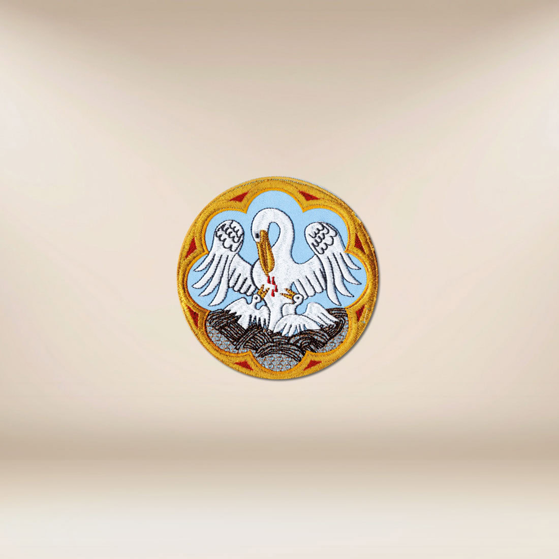 Aplikacja haftowana Pelikan należy do najbardziej wymownych symboli chrześcijańskich, zakorzenionych w tradycji Kościoła i teologii eucharystycznej. Przedstawienie pelikana, który według średniowiecznej symboliki karmi swoje pisklęta własną krwią, jest wyrazistą alegorią ofiary Jezusa Chrystusa oraz Jego miłości oddanej ludziom w Najświętszym Sakramencie. Motyw ten od wieków zdobi szaty liturgiczne i paramenty używane podczas celebracji o szczególnym znaczeniu.