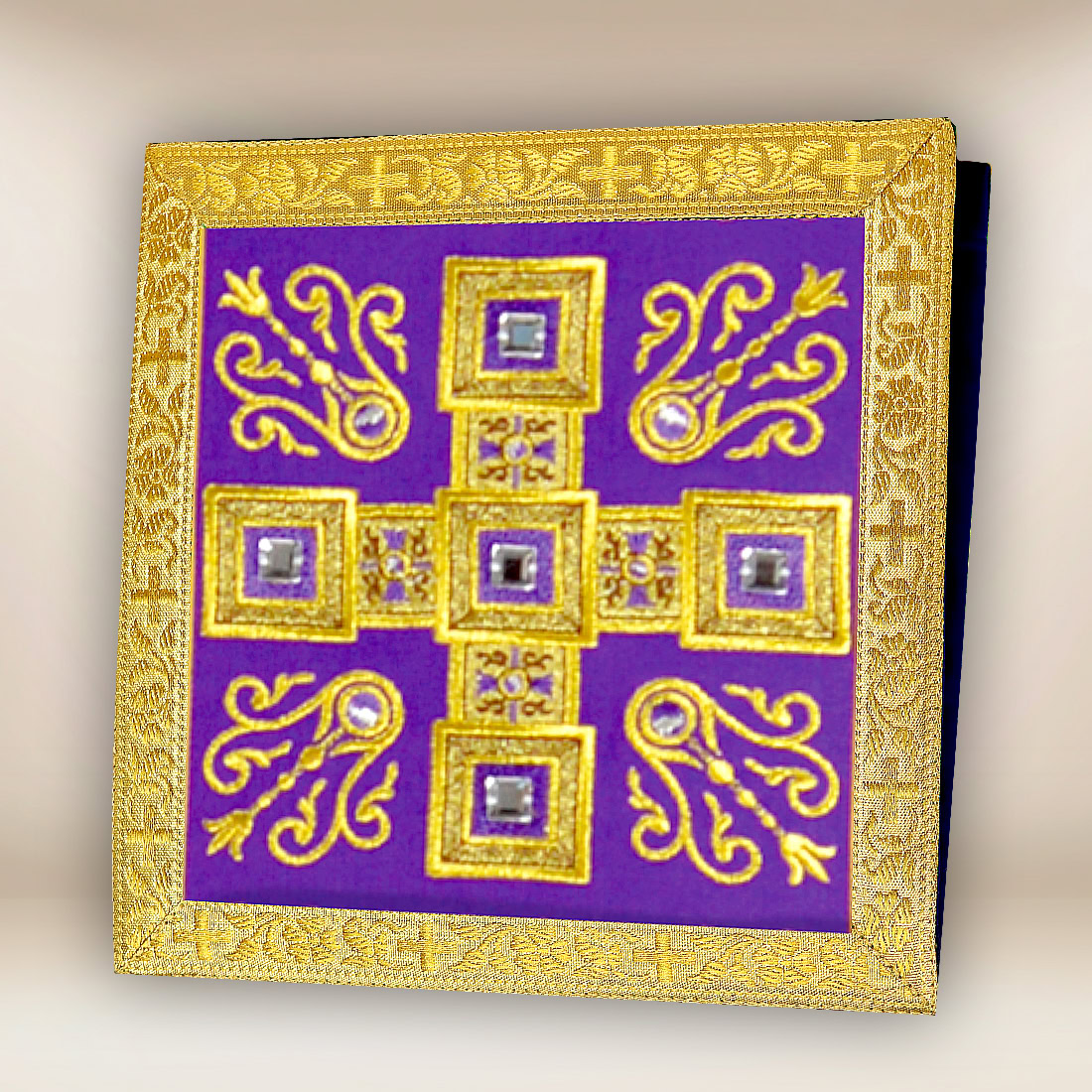 Materiał wykorzystany do stworzenia bursy jest lekki, gładki i przyjemny w dotyku, dzięki czemu produkt prezentuje się nienagannie zarówno z bliska, jak i z dalszej perspektywy. Haft wykonano z dbałością o proporcje, aby motyw był wyrazisty, harmonijny i pełen liturgicznego wyrazu. Połączenie złotych nici z głębokim odcieniem fioletu nadaje bursie dostojny charakter, ale nie czyni jej przesadnie ozdobną — zachowuje równowagę między elegancją a prostotą.