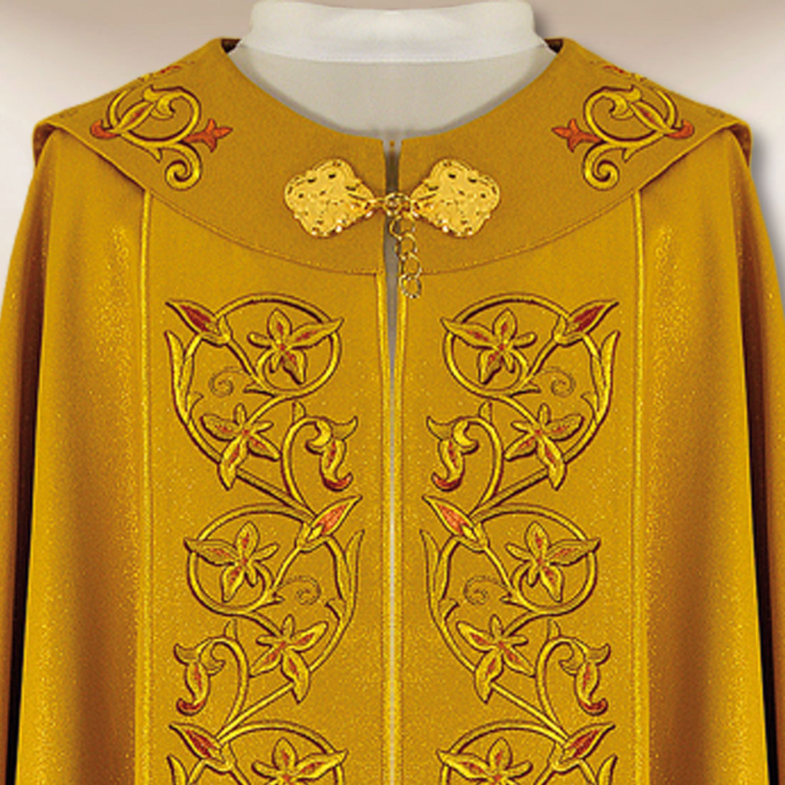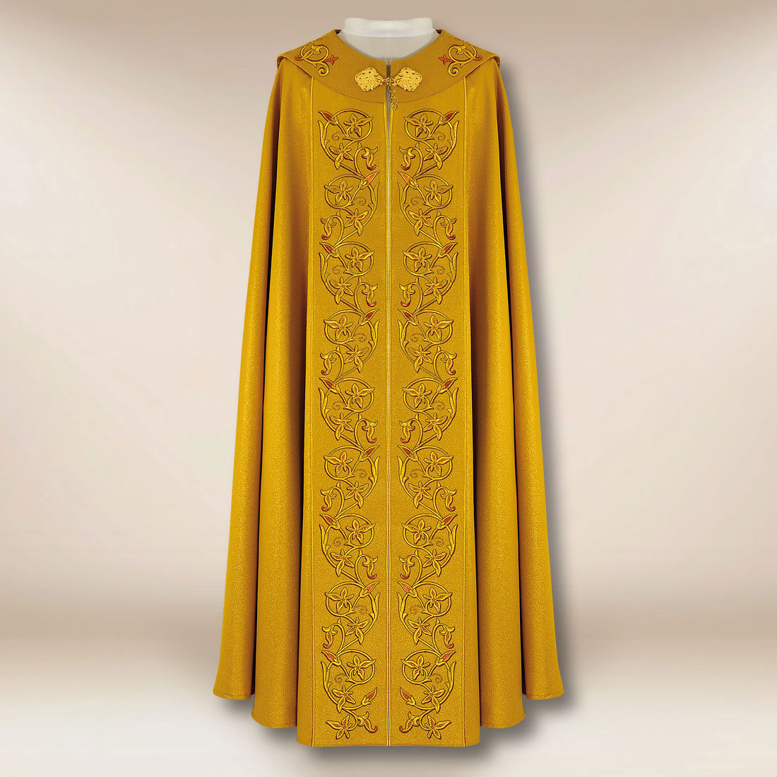 Rozmiar uniwersalny sprawia, że kapa jest odpowiednia dla każdego kapłana i doskonale dopasowuje się do sylwetki, zachowując pełną swobodę ruchów.