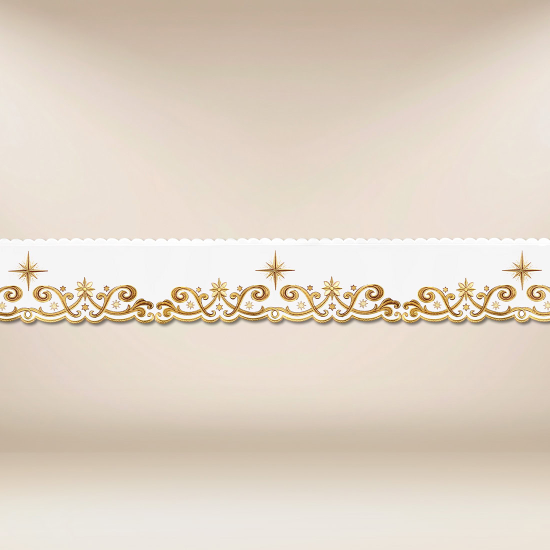 Koronka haftowana Bożonarodzeniowa to idealna propozycja dla parafii, które dbają o estetykę ołtarza oraz liturgiczną oprawę Mszy Świętej. Wysoka jakość wykonania oraz dopracowany detal wyróżniają produkt na tle standardowych dekoracji.