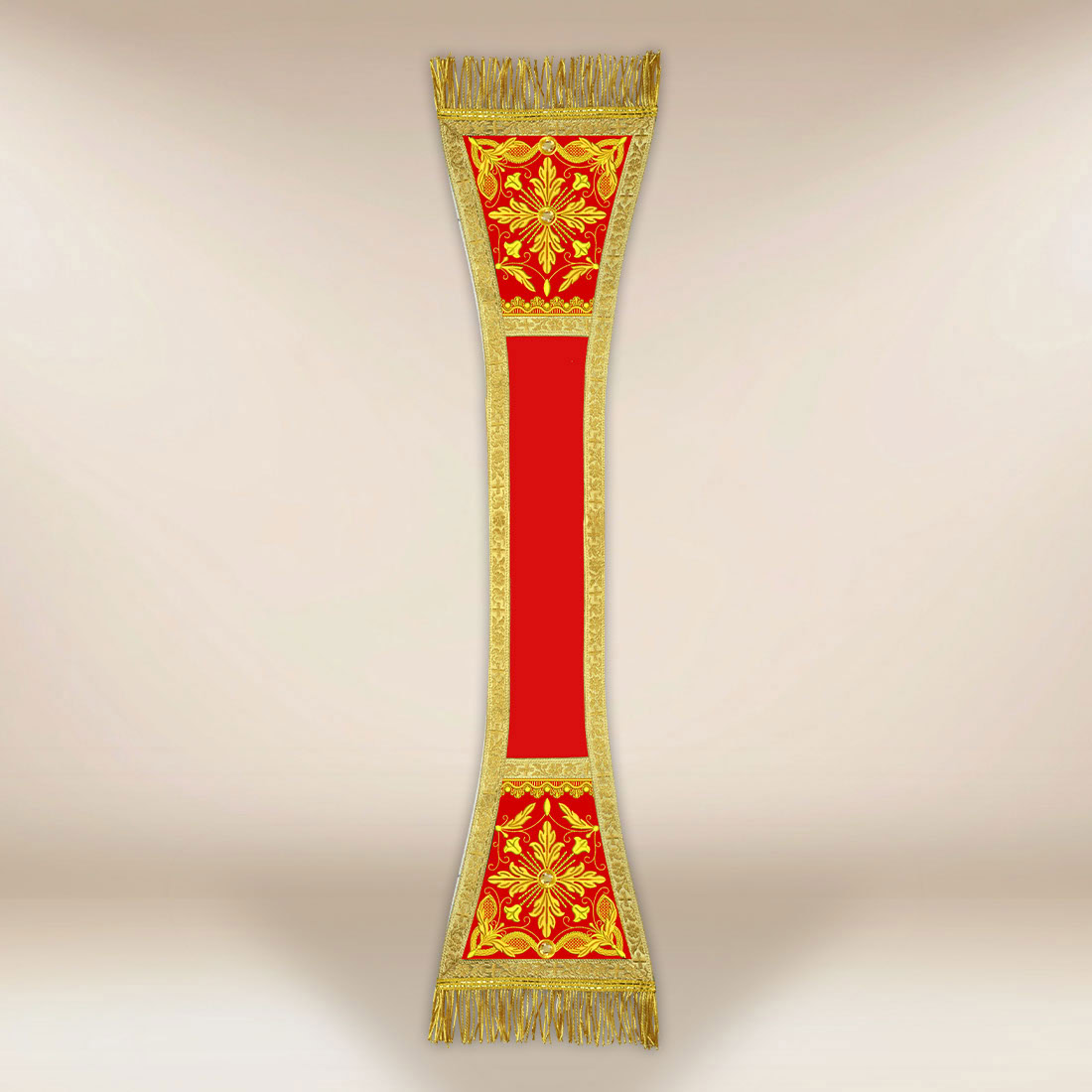 Manipularz liturgiczny czerwony haftowany to elegancki i symboliczny element szat kapłańskich, tradycyjnie używany podczas uroczystych celebracji, procesji i liturgii związanych z kolorem czerwonym. Barwa ta od wieków symbolizuje ogień Ducha Świętego, męczeństwo i miłość Chrystusa, dlatego manipularz stanowi ważne dopełnienie szat noszonych w najważniejsze święta oraz msze apostolskie.