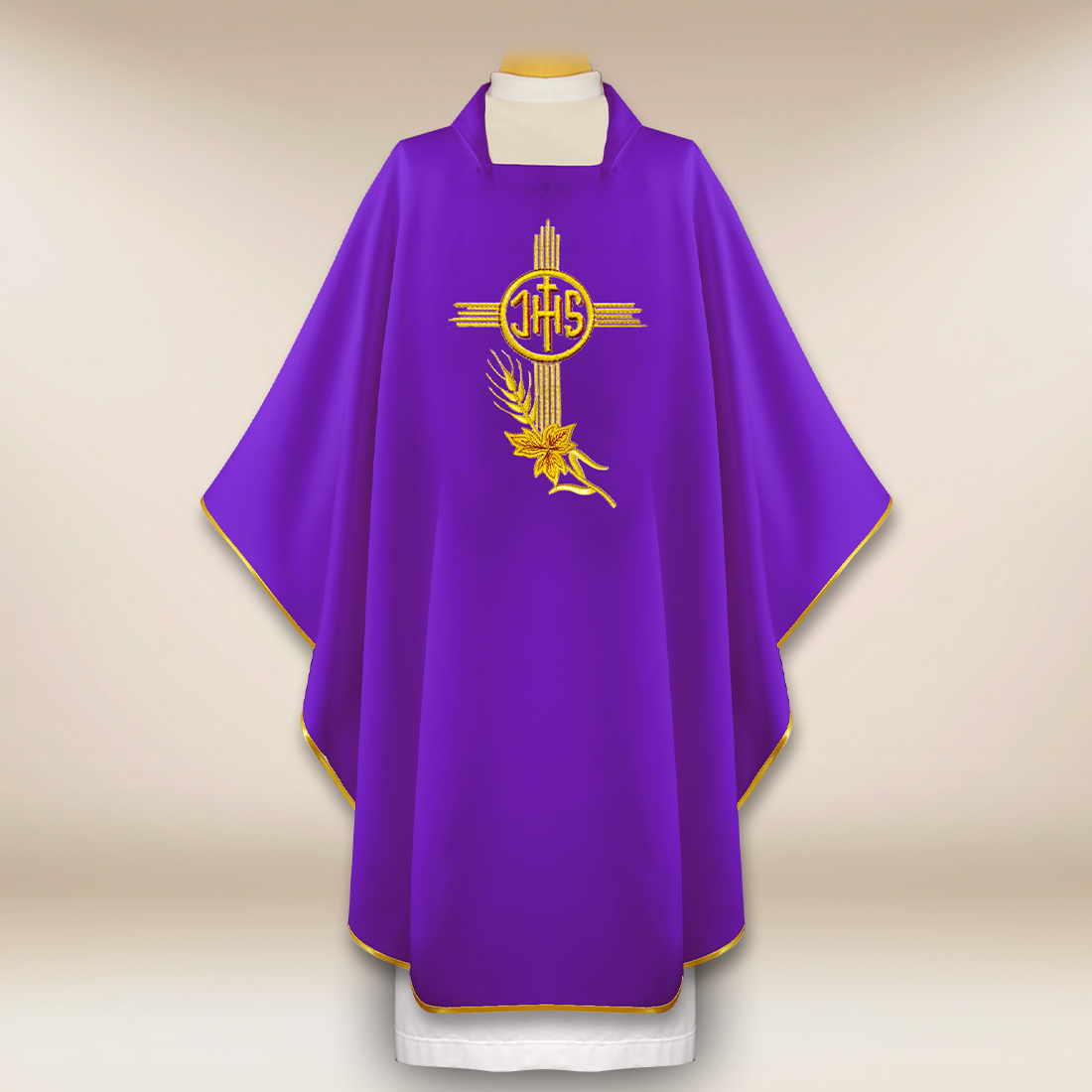 Ornat haftowany IHS to klasyczna i elegancka propozycja liturgiczna przygotowana z myślą o celebracjach okresu Adwentu oraz Wielkiego Postu. Utrzymany w głębokim tonie fioletu, nawiązuje do tradycji modlitwy i duchowej refleksji. Tkanina Tropic Włoski, z której wykonano szatę, cechuje się lekkością, miękkością i wyjątkową odpornością na zagniecenia, zapewniając estetyczny wygląd nawet przy intensywnym użytkowaniu.