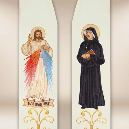 Wizerunek Jezusa Miłosiernego, inspirowany znanym obrazem z napisem „Jezu, ufam Tobie”, podkreśla duchowe przesłanie ufności, przebaczenia i łaski. Ten wymiar duchowy czyni szatę szczególnie odpowiednią na uroczystości związane z Bożym Miłosierdziem, ale również na wszelkie celebracje, w których akcentuje się nadzieję i zaufanie.