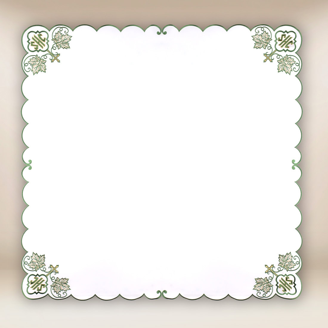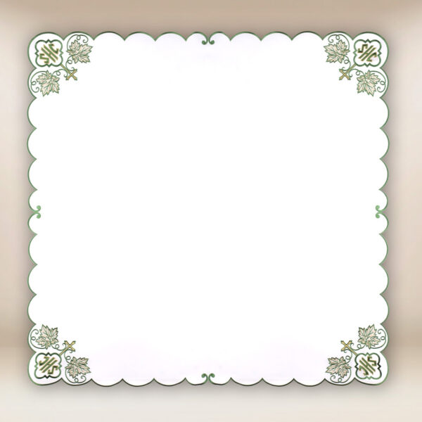 Wykonana z wysokiej jakości tkaniny liturgicznej, Serwetka Haftowana „IHS Zielony” 95×95 zachwyca starannością wykończenia i dbałością o każdy detal. Precyzyjnie wykonany haft nadaje całości elegancki charakter i zapewnia trwałość nawet przy intensywnym użytkowaniu. Produkt dostępny jest w dwóch praktycznych rozmiarach: 95×95 cm oraz 110×110 cm, co pozwala dopasować go do różnych typów ołtarzy.