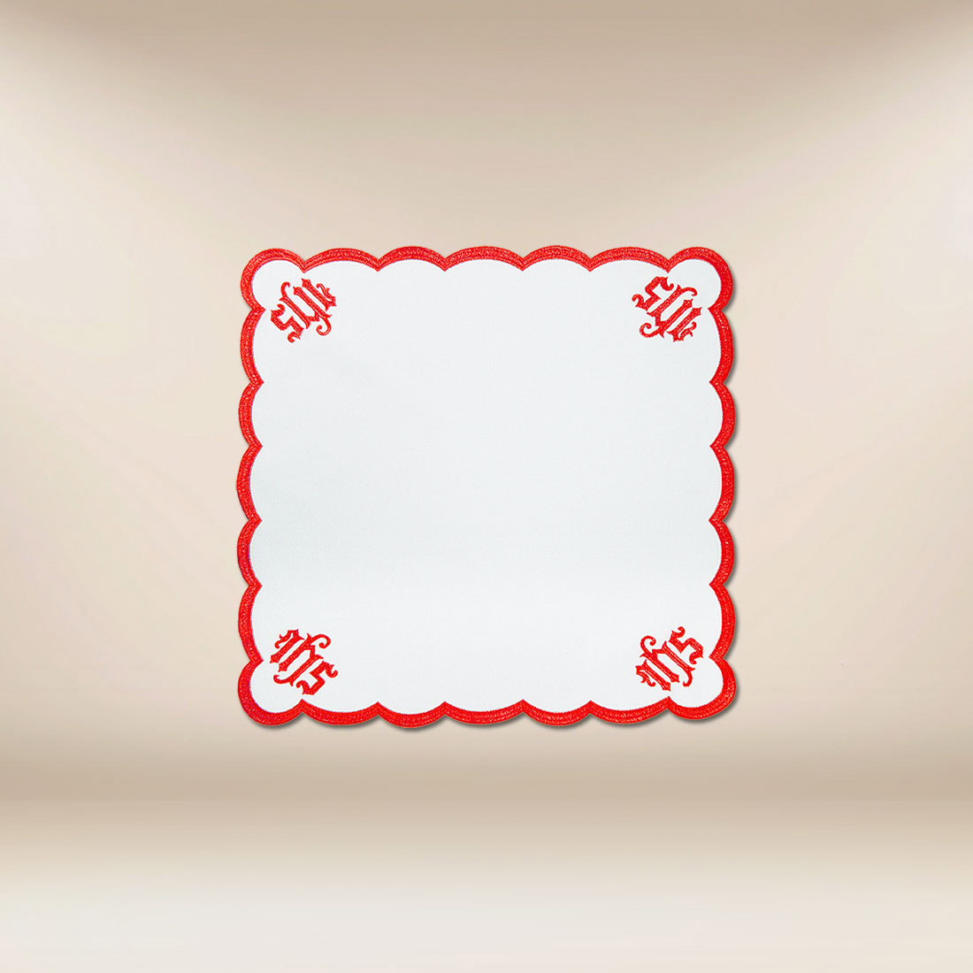 Serwetka haftowana „Katedralny” Czerwona 45×45 przeznaczona jest do ołtarzy głównych i bocznych jako samodzielna dekoracja lub element spójnego wystroju prezbiterium. To propozycja dla parafii poszukujących wyrazistej, a zarazem eleganckiej oprawy liturgii.