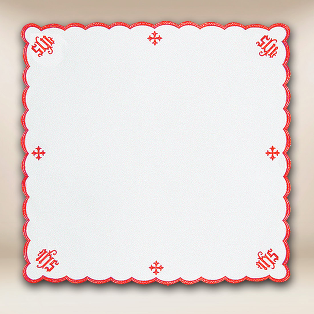 Serwetka haftowana liturgiczna „Katedralny” 95×95 to klasyczna propozycja stworzona z myślą o pięknym i godnym wystroju ołtarza. Jej charakterystyczny, dekoracyjny kształt oraz cztery delikatnie rozmieszczone hafty IHS w czerwonym odcieniu nadają serwetce wyjątkowy rytm i estetyczną spójność. Zastosowana kolorystyka podkreśla sakralny charakter produktu, harmonizując z tradycyjną symboliką Eucharystii. Ta serwetka haftowana liturgiczna idealnie wpisuje się w celebracje wymagające szczególnej oprawy, akcentując duchową głębię liturgii.