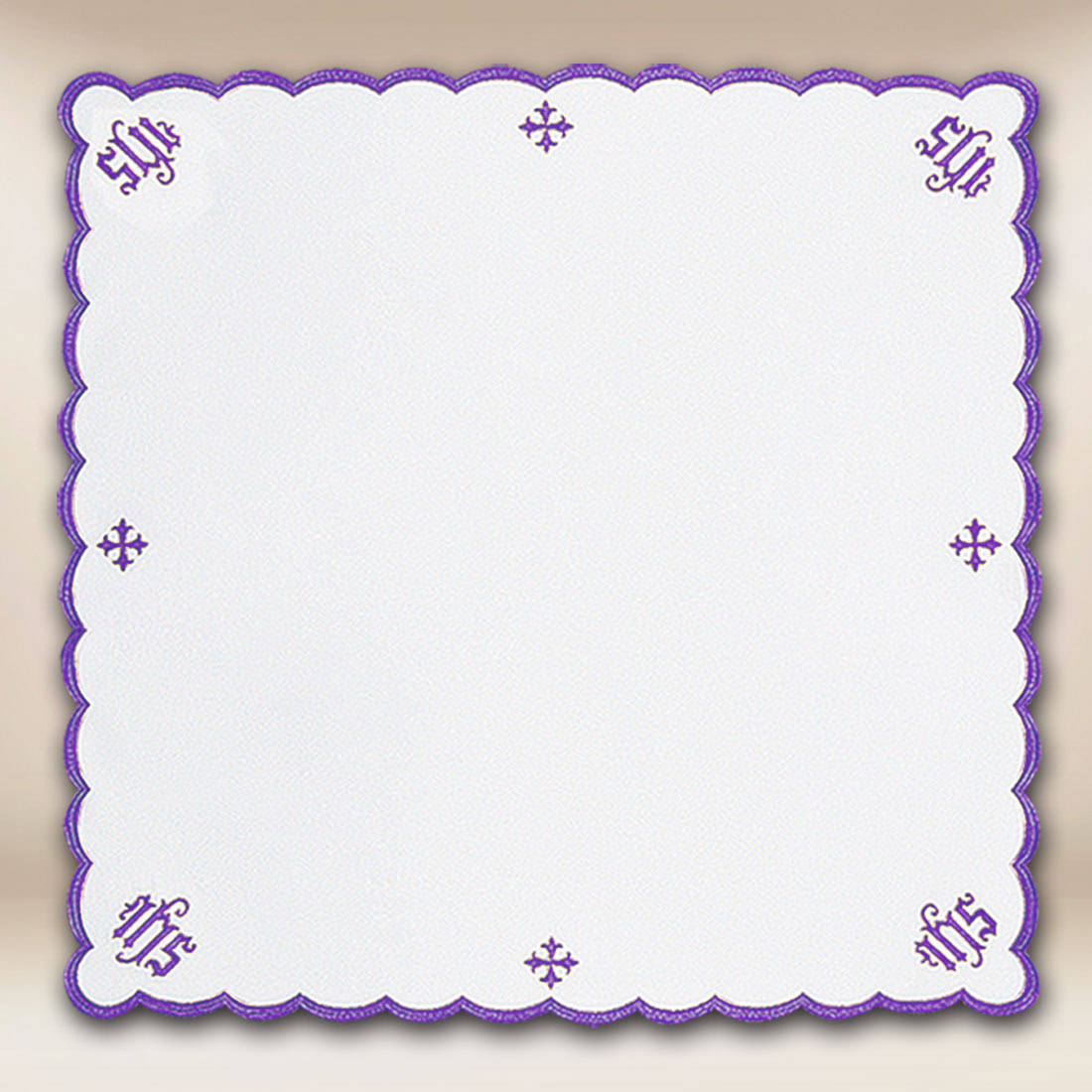Wykonana w 100% z wysokogatunkowego poliestru, serwetka jest materiałem plamoodpornym, co zapewnia trwałość oraz komfort użytkowania. Starannie obszyte brzegi oraz subtelnie zaakcentowane detale świadczą o jakości i profesjonalnym wykonaniu. Fioletowy kontur i drobne elementy dekoracyjne nadają całości liturgicznego charakteru, pomagając zachować atmosferę modlitwy i skupienia.