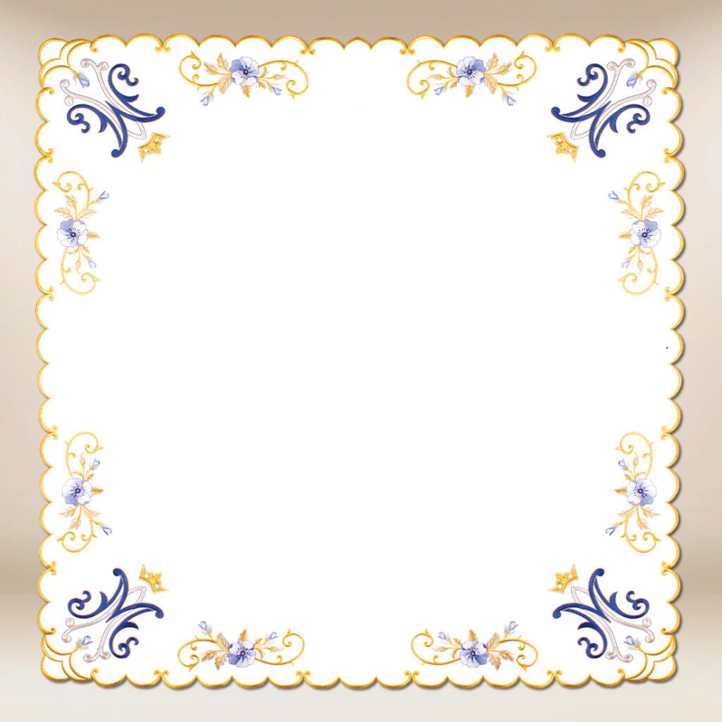 Liturgiczna serweta ołtarzowa Maryjna 110cm×110 cm to elegancki element wyposażenia prezbiterium, łączący estetykę i duchowy wymiar celebracji.
