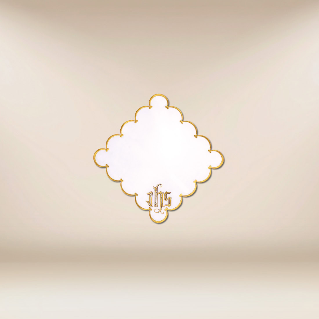Serwetka haftowana o wymiarach 32cm× 32cm z motywem IHS to elegancki element wystroju ołtarza, który łączy subtelność, symbolikę i duchowe znaczenie. Wykonana z wysokiej jakości białej tkaniny poliestrowej, zachowuje idealny wygląd nawet po wielu praniach. Delikatny złoty haft, umieszczony wokół brzegów oraz centralnie z symbolem IHS, nadaje serwetce wyjątkowy charakter, podkreślając uroczysty nastrój liturgii i obecność Eucharystii.