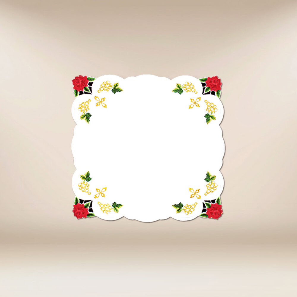 Prezentowana serwetka ołtarzowa z różami 45×45cm to elegancki i trwały element przeznaczony do użytku w przestrzeni ołtarzowej. Wykonana z wysokiej jakości białej tkaniny o gładkiej, odpornej na plamy powierzchni, łączy w sobie funkcjonalność i estetykę, które są kluczowe w liturgicznym wystroju kościołów i kaplic. Materiał 100% poliester zapewnia dużą trwałość, a zarazem zachowuje miękkość i naturalny wygląd, dzięki czemu serwetka prezentuje się nienagannie nawet podczas intensywnego użytkowania.