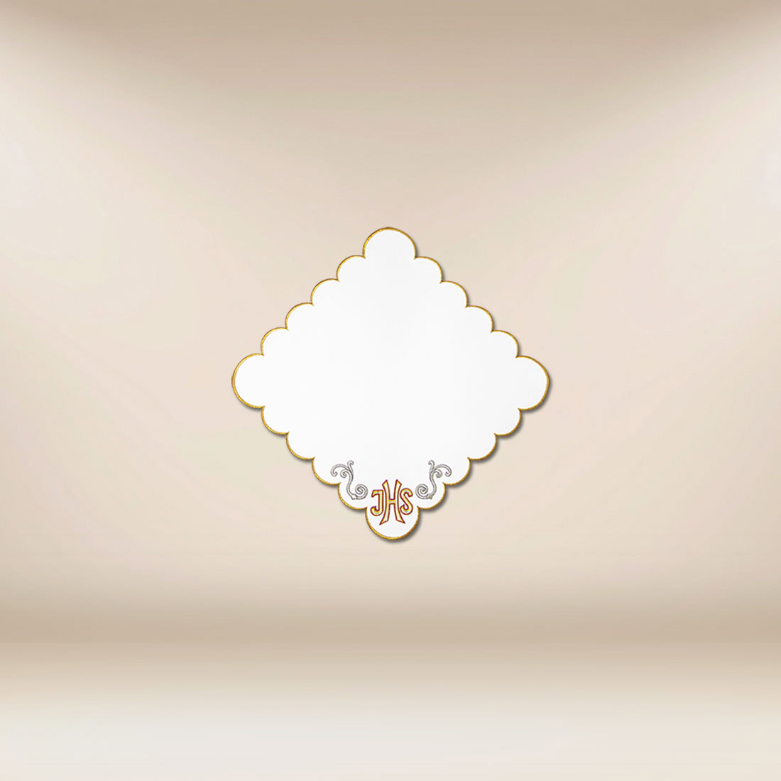 Serwetka haftowana liturgiczna „San Marino” 32×32 została zaprojektowana z myślą o eleganckiej i godnej oprawie celebracji eucharystycznych. Jej charakterystyczny kształt oraz precyzyjnie wykonany haft w złotym odcieniu sprawiają, że produkt doskonale podkreśla sakralny wymiar liturgii. Ornamenty zdobiące centralny motyw nadają serwetce lekkości i harmonii, tworząc kompozycję piękną w swej prostocie. Ta serwetka haftowana liturgiczna świetnie prezentuje się zarówno podczas codziennych Mszy świętych, jak i uroczystych nabożeństw.