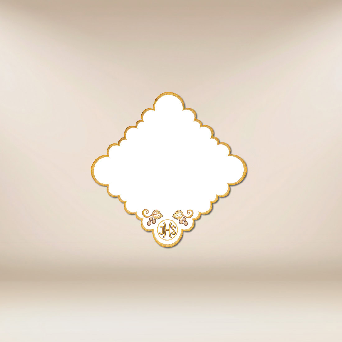 Serwetka liturgiczna 32cm x 32cm  „Złoty Kielich” wykonana z wysokiej jakości białej tkaniny poliestrowej (100%).