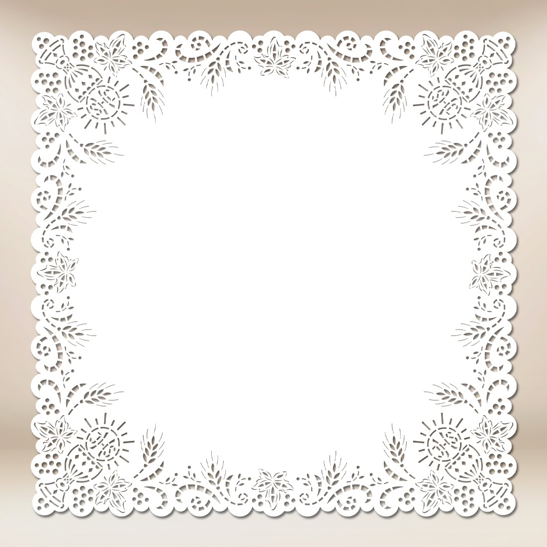 Serwetka ołtarzowa „Kielich Wiary” została zaprojektowana jako harmonijne dopełnienie przestrzeni liturgicznej, w której każdy detal wspiera skupienie i podkreśla sakralny charakter celebracji. Motyw dekoracyjny nawiązuje do symboliki eucharystycznej, przypominając o centralnym miejscu Ofiary i obecności Chrystusa w liturgii.