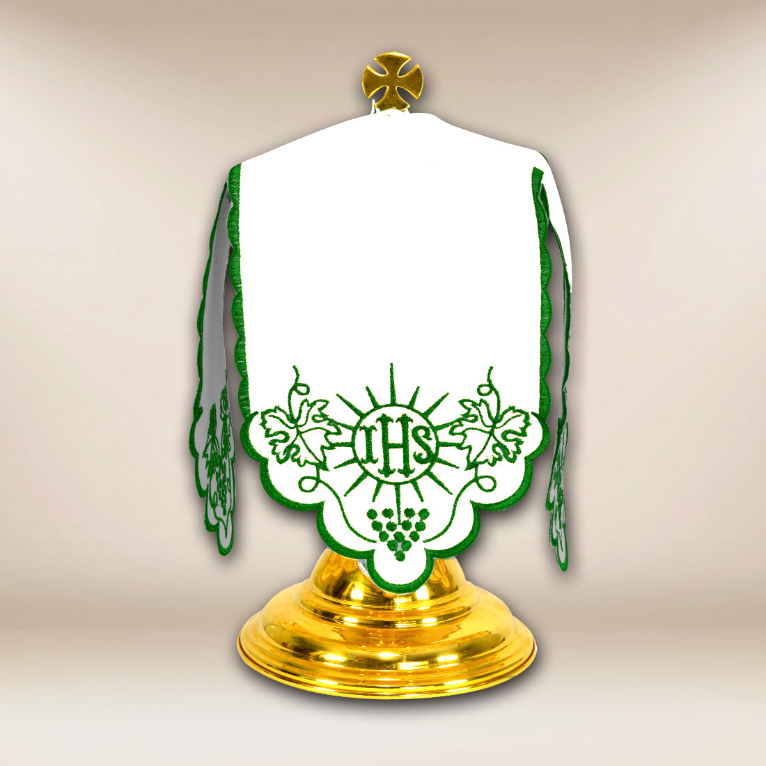 Zdobiona rozbudowanym haftem IHS z motywem winorośli i kłosów, podkreśla obecność Chrystusa w Najświętszym Sakramencie oraz liturgiczny charakter okresu zwykłego.