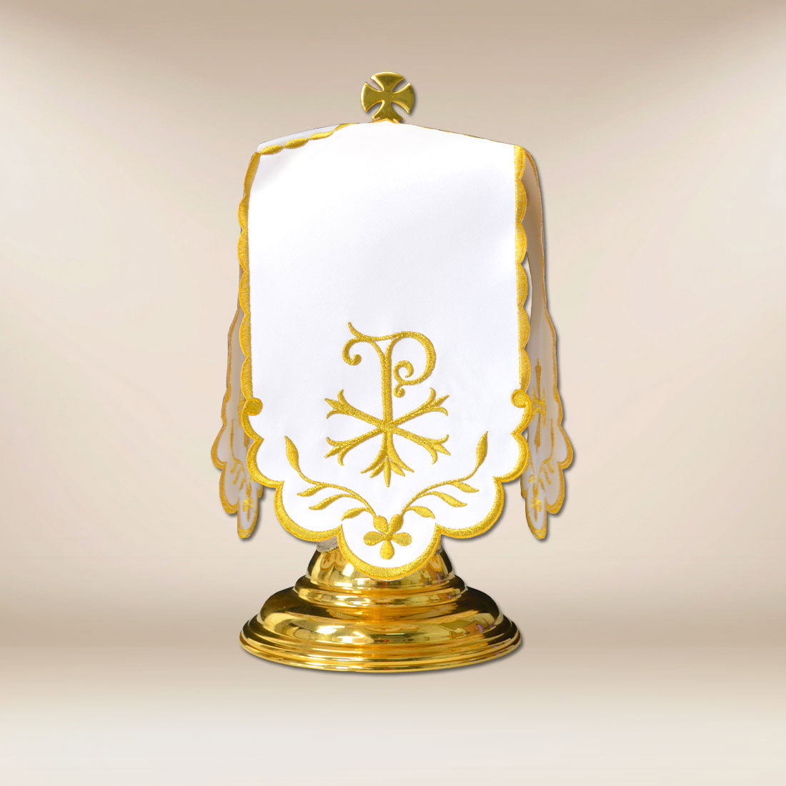 Każdy jej element został opracowany tak, by zachować właściwe proporcje oraz elegancję charakterystyczną dla klasycznych wyrobów sakralnych. Tkanina układa się miękko, tworząc równą i estetyczną formę wokół puszki, a precyzyjne zdobienia – niezależnie od tego, czy są subtelne, czy bardziej rozbudowane – pozostają czytelne i wyważone. Dzięki temu wyrób sprawdza się zarówno podczas uroczystych celebracji, jak i w codziennej liturgii.